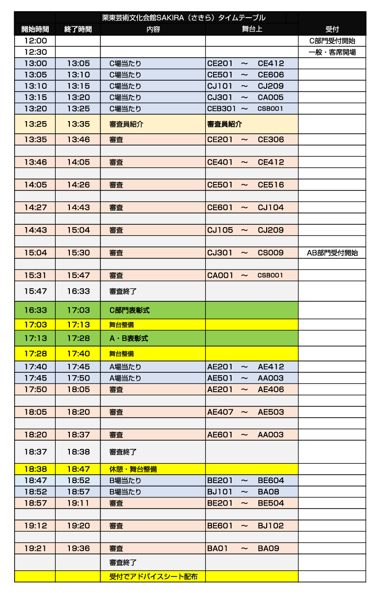 よって常に舞台(審査)進行状況の把握をお願い致します。